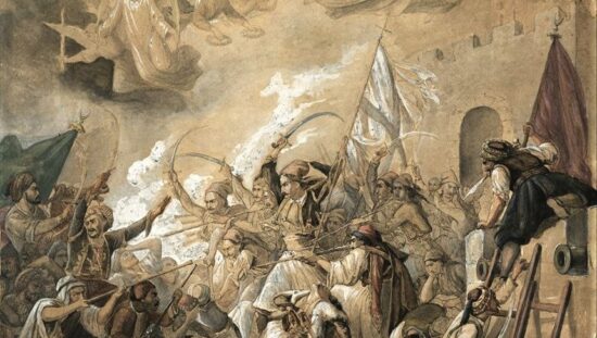 Τότες ἐταραχτήκανε τὰ σωθικά μου, καὶ ἔλεγα πὼς ἦρθε ὥρα νὰ ξεψυχήσω· κ᾿ εὑρέθηκα  σὲ σκοτεινὸ τόπο καὶ βροντερό, ποὺ ἐσκιρτοῦσε σὰν κλωνὶ στάρι ῾ς τὸ μύλο ποὺ ἀλέθει  ὀγλήγορα, ὡσὰν τὸ χόχλο ῾ς τὸ νερὸ ποὺ ἀναβράζει᾿ ἐτότες ἐκατάλαβα πὼς ἐκεῖνο ἤτανε  τὸ Μεσολόγγι· ἀλλὰ δὲν ἔβλεπα μήτε τὸ κάστρο, μήτε τὸ στρατόπεδο, μήτε […]