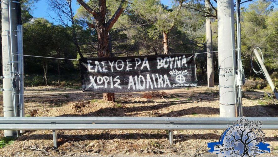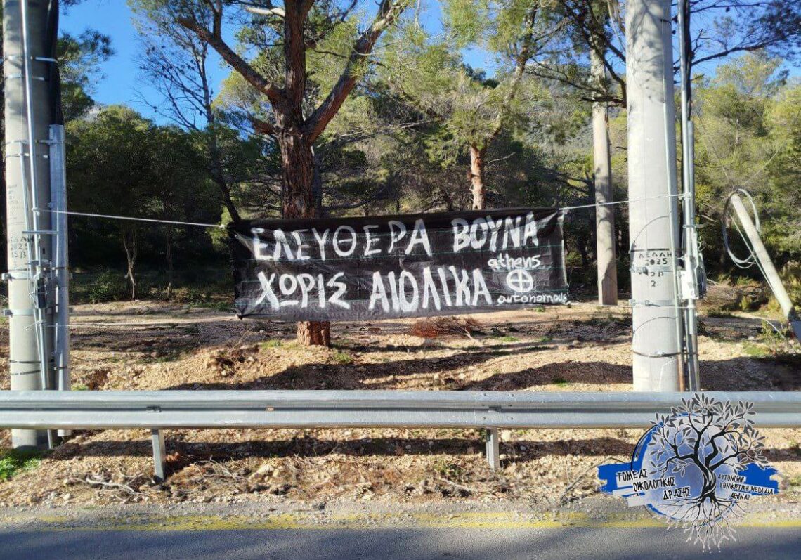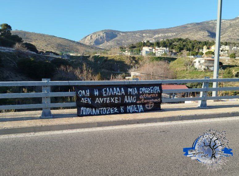 Ανάρτηση πανό από τον τομέα περιβάλλοντος της κοινότητας μας στους πρόποδες της Πάρνηθας. Ένα κράτος το οποίο έχει βάλει σκοπό και στόχο να εξαφανίσει ολοσχερώς το οικοσύστημα για τους δικούς του οικονομικούς και κερδοσκοπικούς λόγους και δεκάδες πολυεθνικές εταιρείες που συνεργάζονται με αυτό, λεηλατώντας κάθε βουνό της χώρας, να γνωρίζουν πως θα βρουν μπροστά τους όλους εμάς που αναγνωρίζουμε την φύση ως το δεύτερο σπίτι μας!